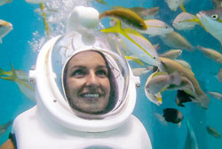 De Palm Island and Sea TrekEnjoy the waterworld of De Palm Island – a private reef island to escape the routine of the hotel scene. Switch it up with unlimited food and beverage, boundless activities, and unrestricted relaxation on a unique coral island just off the shore of Aruba. Have a blast with limitless banana boat rides or become one with the elements at one of the beaches that offer snorkeling in waters teeming with Blue Parrotfish. De Palm Island, Aruba’s premiere and only all-inclusive attraction, accommodates visitors of all kinds from those looking for family-oriented fun to those seeking out romance and privacy. And Experience with SEATREK our amazing sea life as you walk along a walkway placed below the surface. Air is safely delivered to the underwater helmet when you feed the fish and view the man-made reef. No diving or snorkeling experience required. Sea Trek is only offered at De Palm Island and needs to be purchased together with an entrance ticket to De Palm Island.Duration: approximately 1 hour. You will be scheduled after arrival at De Palm Island. Price per person for a half-day on De Palm Island including SEA TREK: $ 130
